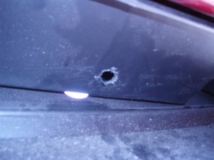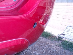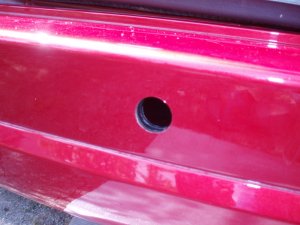 Potom vyvŕtal diery originál vrtákom. Vŕtal som durkom cez nárazník (červený plast) a potom za ním cez ten čierny plast.