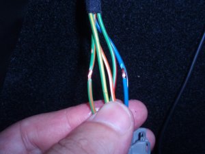Skúšačkou som zistil, že modrý je zem a zelený s oranž. pásikom je cúvačka 12V, tak som tieto 2 odizoloval
