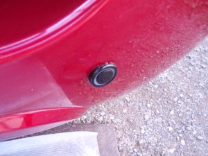 Nakoľko som sa nemohol dostať z vnútornej strany k diere, bola tam úska medzera. tak som ten čierny plast prevŕtal vrtákom takej veľkosti, aby akurát prešla koncovka snímača cez to.