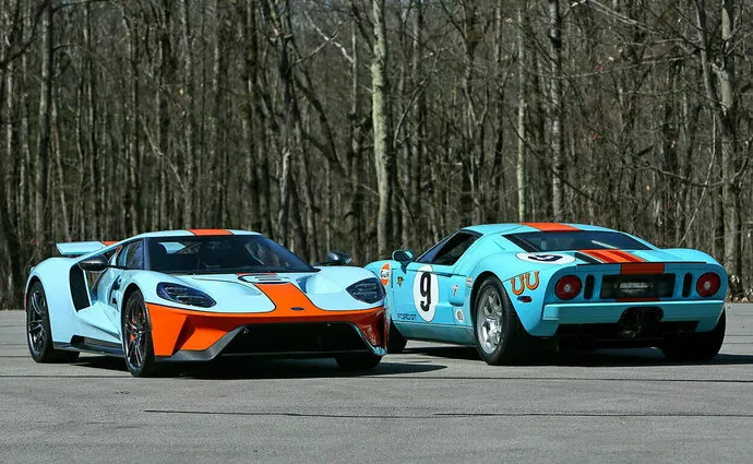 Kdyz se potka historie a soucasnost: Stary a novy Ford GT v barvach Gulf Oil se prodava